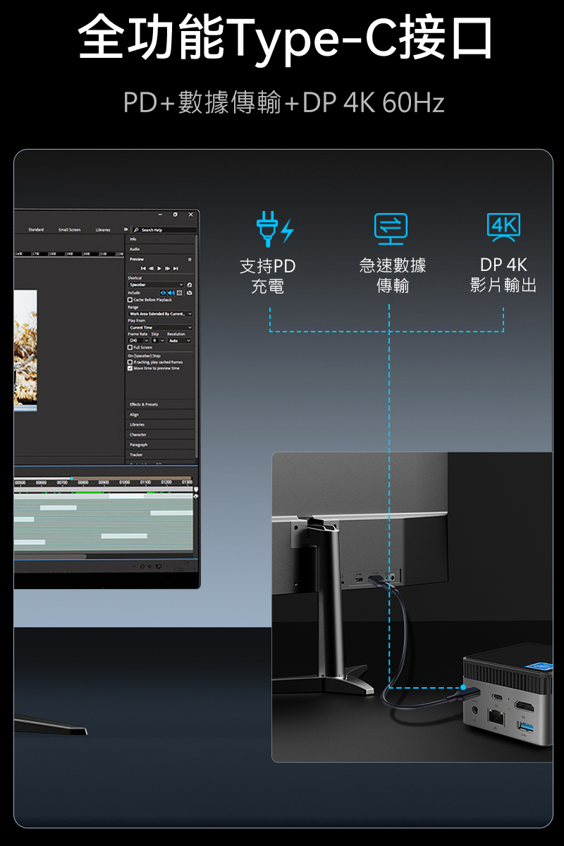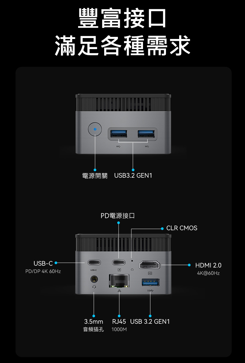 .输出:HDMI 2.0 4K/60Hz+Type-C(4K/60Hz)