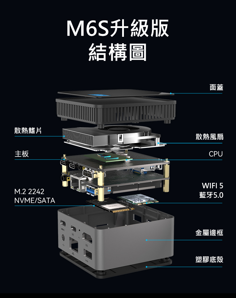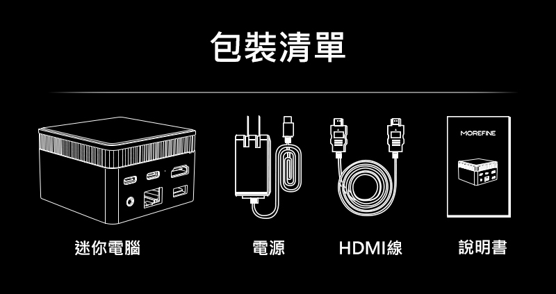 .内容物:M6S 迷你电脑(Intel N150 3.6GHz)*1、专用电源变压器(100~240V)*1、HDMI线*1