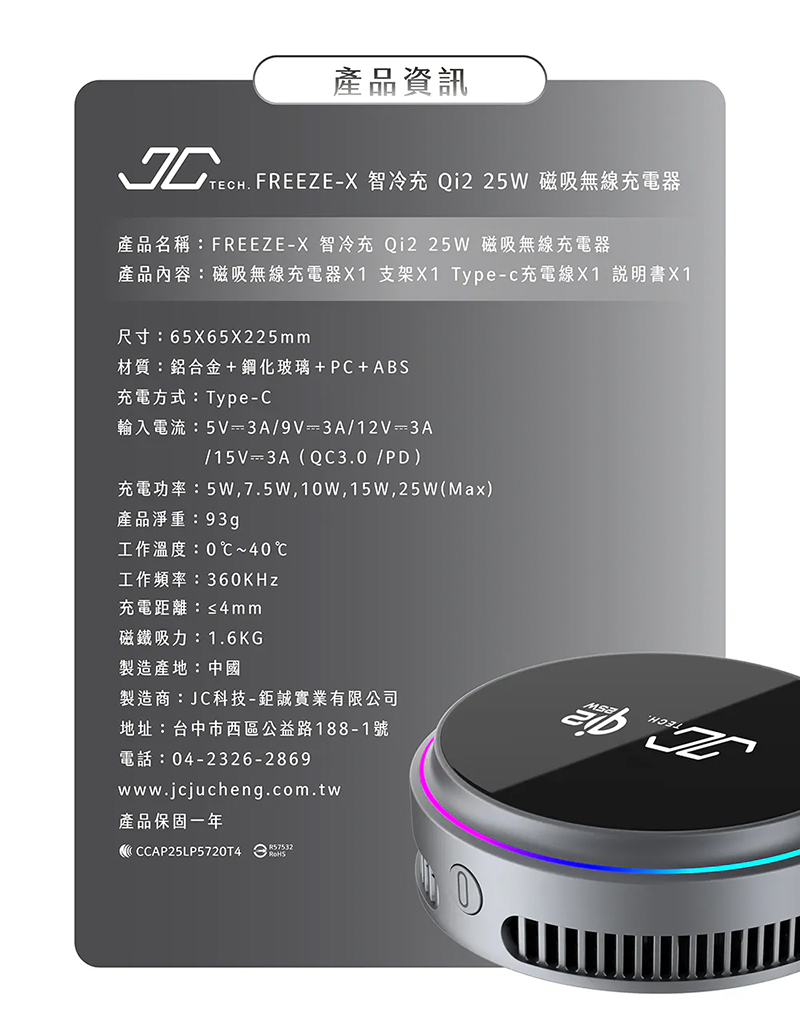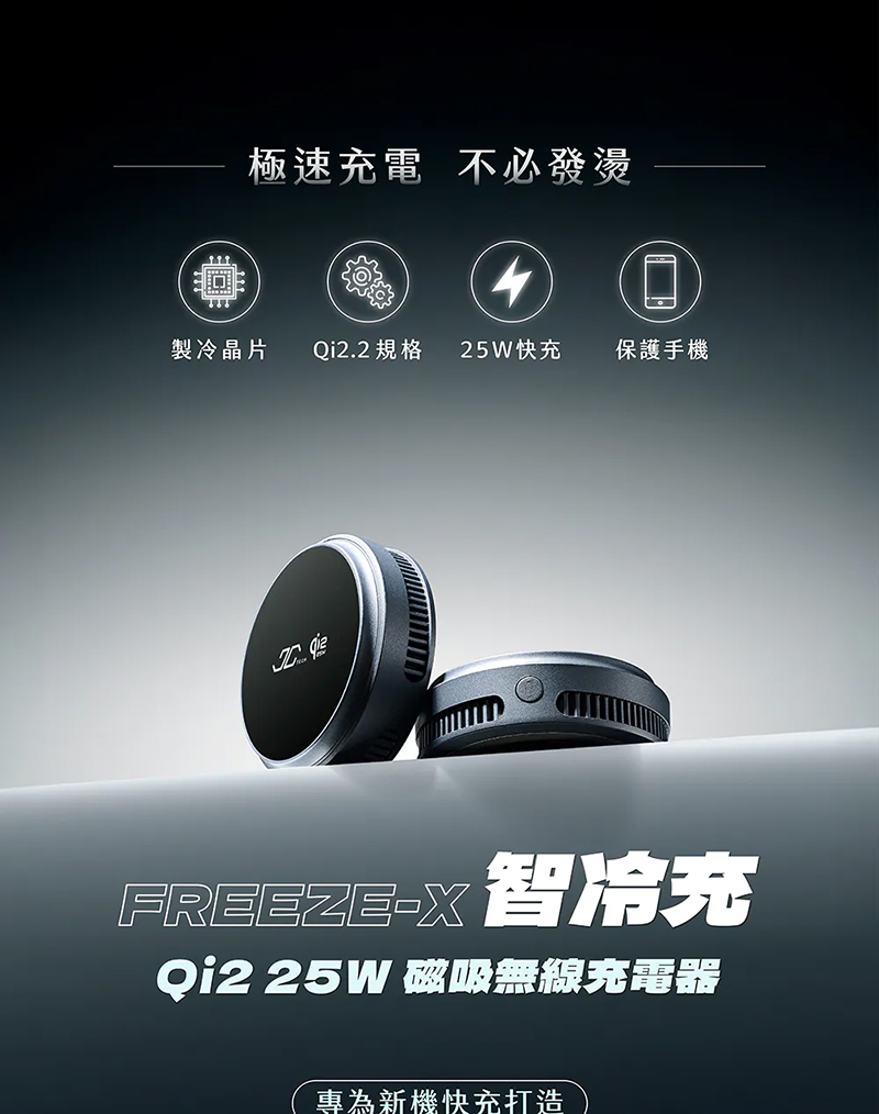 JC TECH. FREEZE-X 智冷充 Qi2 25w磁吸無線充電器 半導體主動製冷 支援MagSafe◉80D030