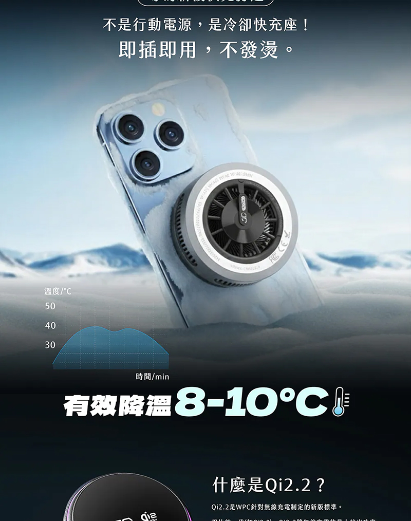 .產品名稱:FREEZE-X 智冷充 Qi225W磁吸無線充電器